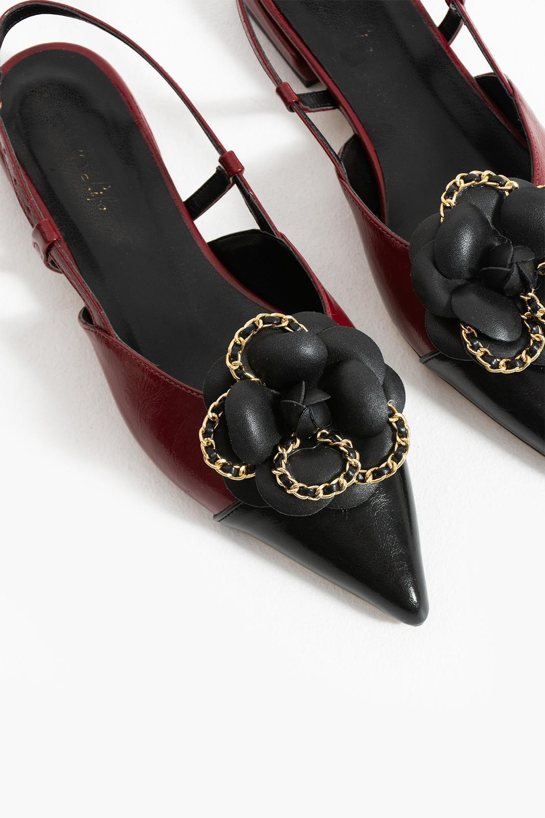 Marga Tokalı Arkası Açık Kalın Topuklu Kadın Ayakkabı - Bordo & Siyah