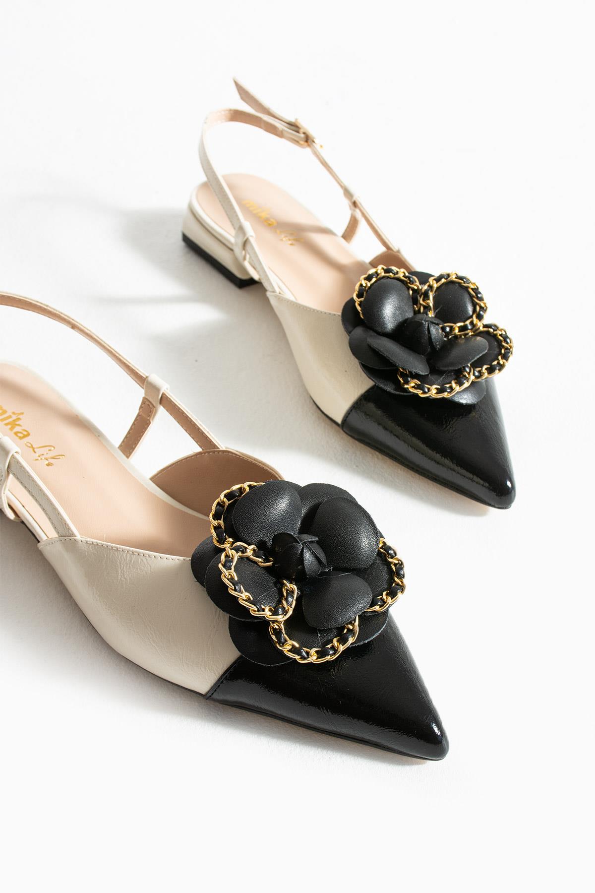 ZUUMKalın & İnce TopukluMarga Tokalı Arkası Açık Kalın Topuklu Kadın Ayakkabı - Ekru & Siyah
