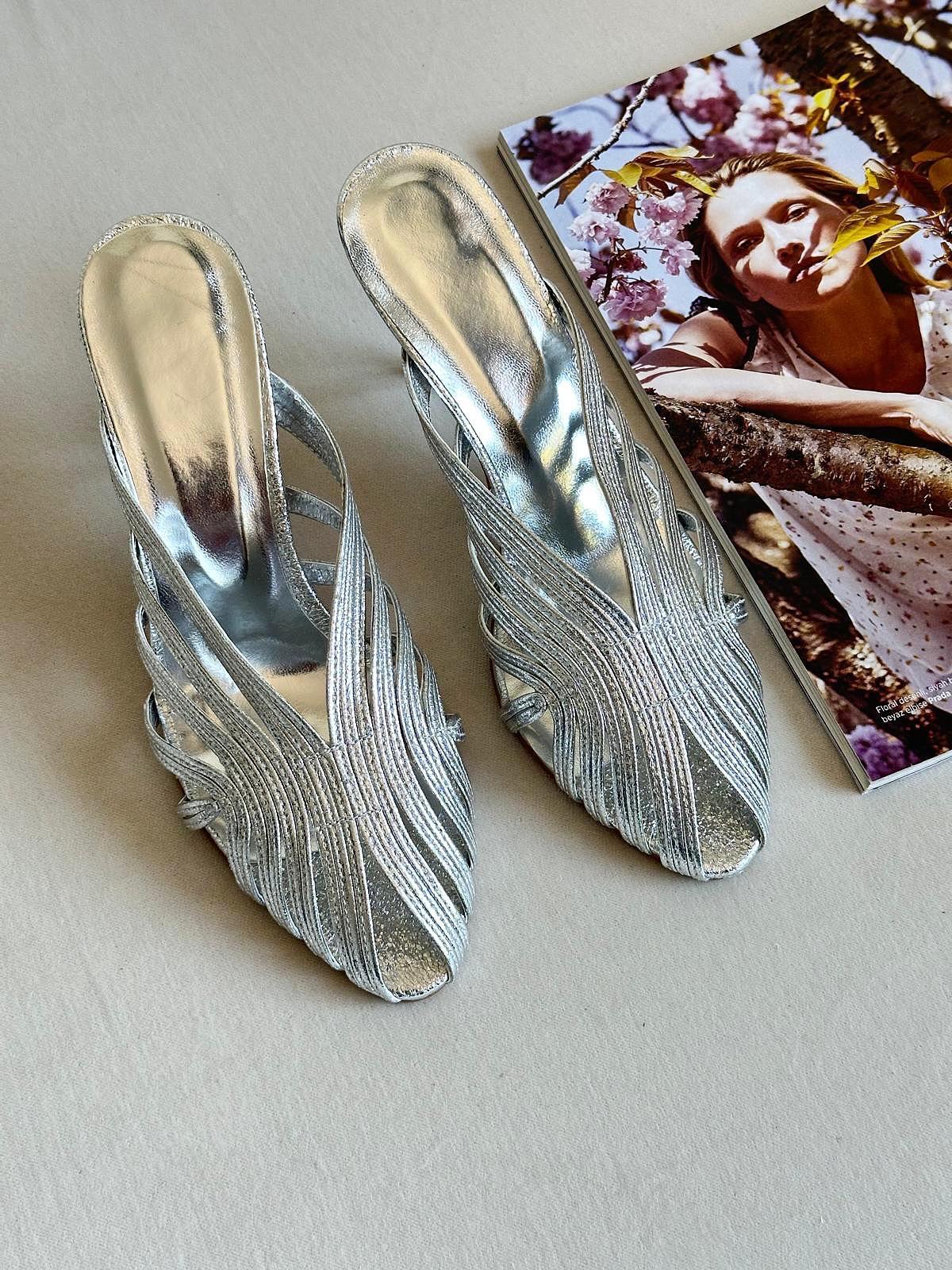 Reman İnce Topuklu Kadın Terlik - Gümüş