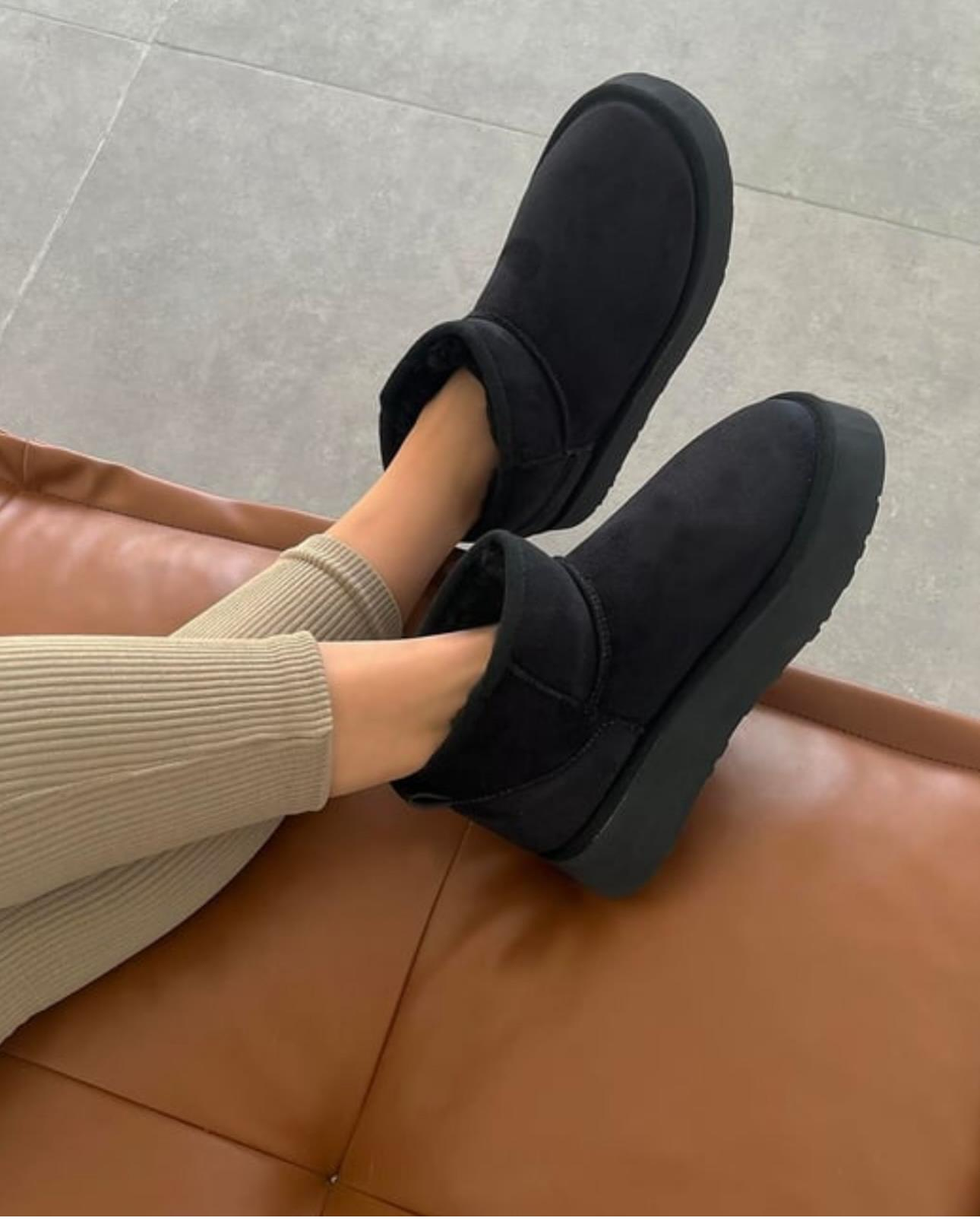 ZUUMBOT & ÇİZMEStorm Mini Boy Kalın Taban UGG Style Kadın Bot - Siyah Süet