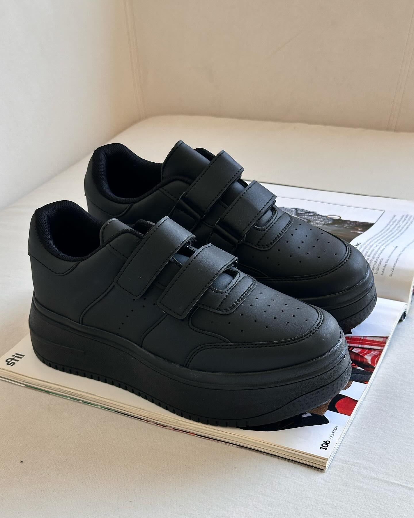 ZUUMSNEAKERZoflex Cırtlı Ortopedik Kalın Taban Kadın Sneaker - Siyah Cilt